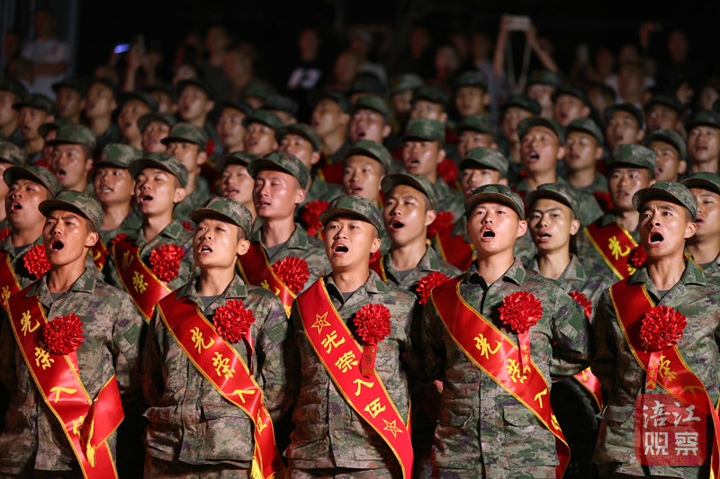 演出結束后,新兵們整齊列隊,高唱軍歌《當那一天來臨》——“準備好了嗎,士兵兄弟們,當那一天真的來臨……”鏗鏘有力的歌聲回蕩在劇場,表達了他們保家衛(wèi)國、奮勇前進的堅定信念。