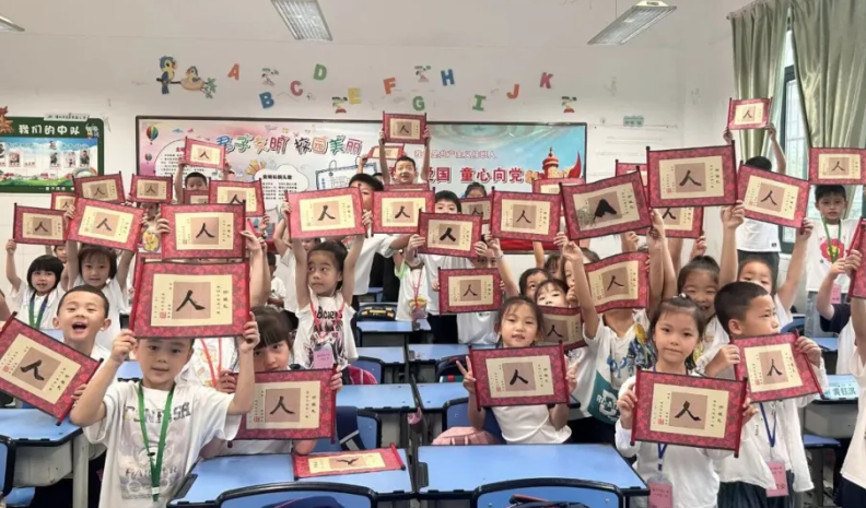 書(shū)寫(xiě)人字,一撇一捺立乾坤。人字兩筆寫(xiě)春秋,一生一世立本真。該校黨委書(shū)記賈昆揮毫潑墨,以“人”字為范,一筆一劃詳解“頂天立地”的做人真諦。家長(zhǎng)執(zhí)子之手,言傳身教間,傳遞“堂堂正正”的處世準(zhǔn)則;小君子們握筆摹寫(xiě),簽名按印,展示“人”字,合影為念。人字雖簡(jiǎn),簡(jiǎn)單的一撇一捺,卻是漢字的啟蒙,更是人生的第一課——教他們于天地間挺身為“人”,于歲月中守正為“君”。