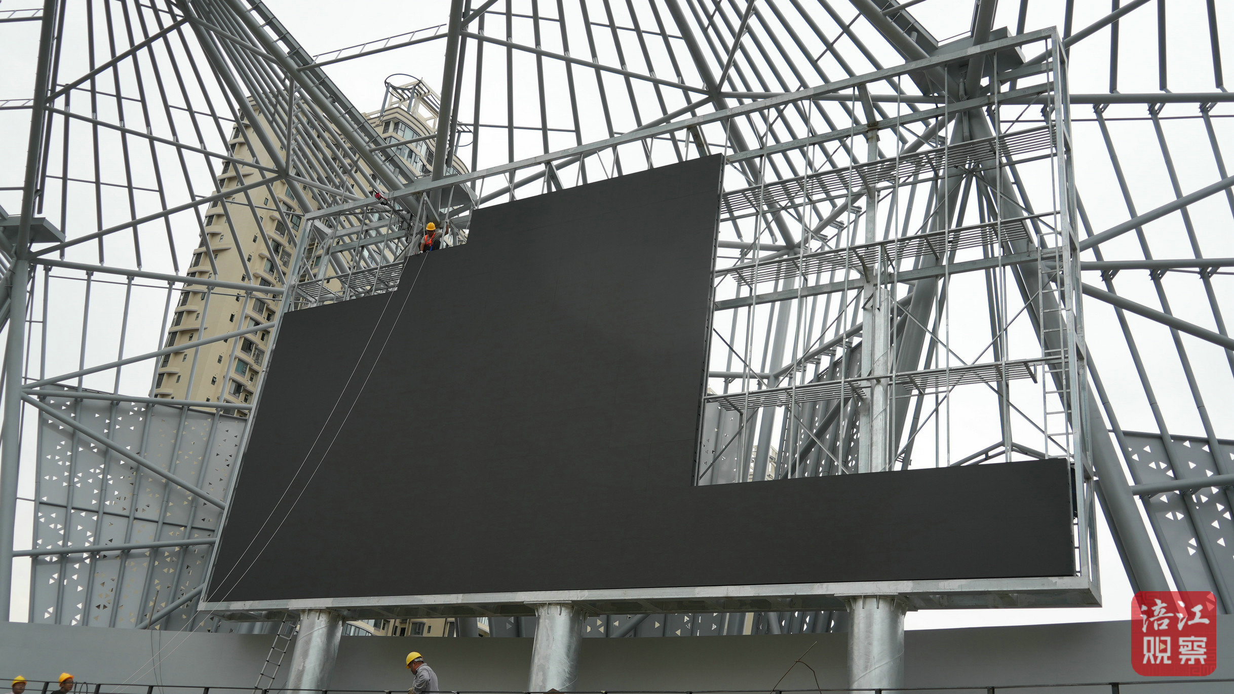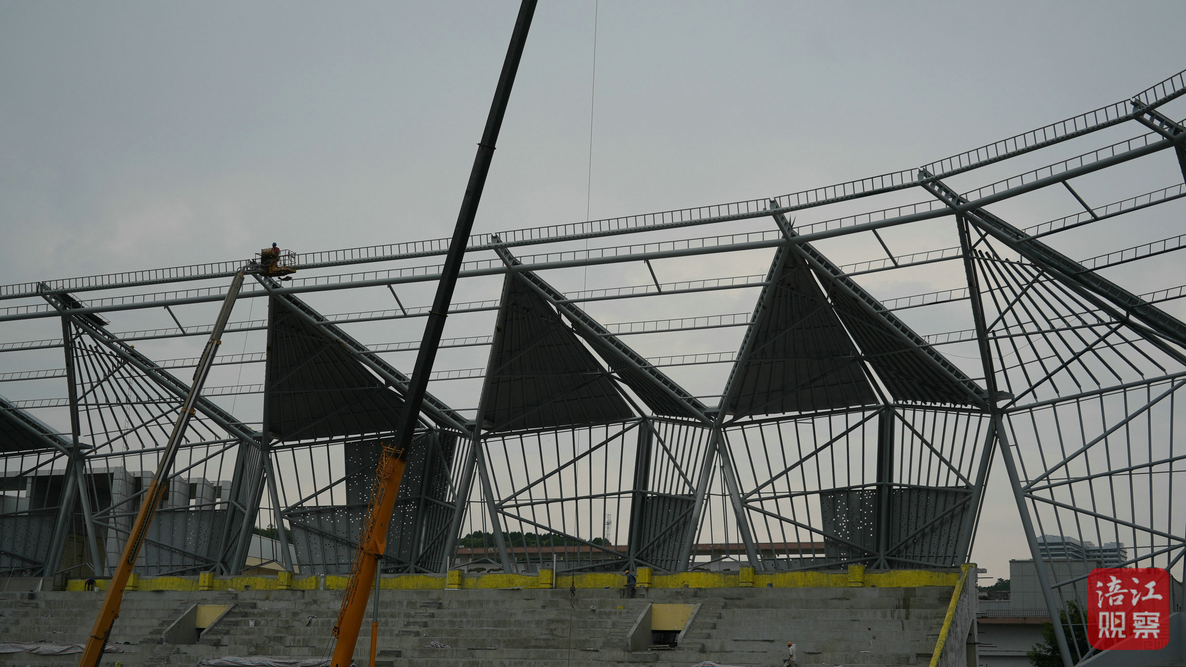 在南看臺區(qū)域,工人們正在拼貼寬20米、高10.5米、總面積超200平方米的巨大LED屏幕。該LED屏幕計劃于本周內(nèi)完成全部安裝并啟動通電調(diào)試,正式投用后,將承擔(dān)賽事直播、比分實時展示、賽事信息播報等重要功能,極大提升觀眾的現(xiàn)場觀賽體驗。