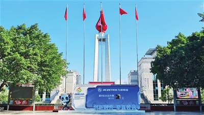 記者在現(xiàn)場看到,倒計時裝置與周邊科技感形象裝置相呼應(yīng),“科寶”IP形象巧妙融入其中,未來感十足。不少市民駐足拍照,市民王先生說:“看到這裝置,就知道科博會要來了,特別期待!”
