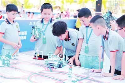 在“走向未來”人工智能自動(dòng)駕駛創(chuàng)新挑戰(zhàn)賽、SUPER AI超級(jí)軌跡系列賽項(xiàng)、未來芯科學(xué)探究試驗(yàn)等11個(gè)項(xiàng)目的比賽中,選手們靈活操控機(jī)器人完成任務(wù)、進(jìn)行編程對(duì)抗,在團(tuán)隊(duì)協(xié)作中比拼創(chuàng)意與策略。“今天我參加的是機(jī)器人比賽,為了這次比賽,我和隊(duì)友花費(fèi)了20天的時(shí)間改進(jìn)程序。”富樂第三實(shí)驗(yàn)小學(xué)六年級(jí)學(xué)生竇嘉鑫說:“從機(jī)器人行駛不穩(wěn)到可以完成復(fù)雜的任務(wù),每一次改進(jìn)都讓我們非常有成就感。” 活動(dòng)中,靈動(dòng)智存-智能立體公共儲(chǔ)存柜、三種“智感互感實(shí)驗(yàn)演示裝置”等一大批青少年科技創(chuàng)新成果進(jìn)行了集中展示,中學(xué)生科技創(chuàng)新成果與科技輔導(dǎo)員創(chuàng)新成果,通過“競(jìng)賽+展覽”的形式將創(chuàng)意轉(zhuǎn)化為實(shí)際成果,展現(xiàn)廣大師生在科學(xué)探究與創(chuàng)新領(lǐng)域的潛力。