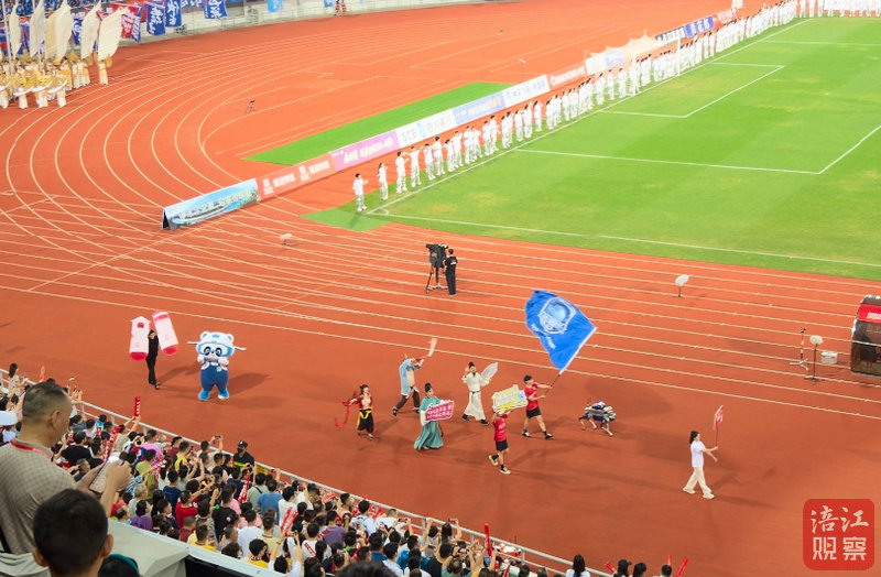 入場(chǎng)完畢后,綿陽特色方隊(duì)再次呼喊“星耀九洲 盛世長虹”口號(hào),并配合各自角色的標(biāo)志性動(dòng)作定格。這一刻,整個(gè)球場(chǎng)仿佛被點(diǎn)燃了一般,氣氛熱烈到了極點(diǎn)。