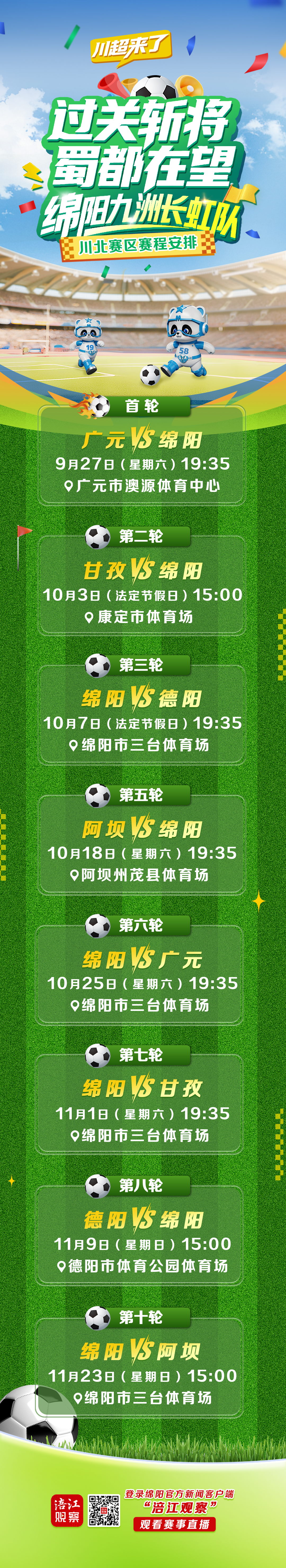 川北賽區(qū)綿陽九洲長虹隊(duì)賽程安排