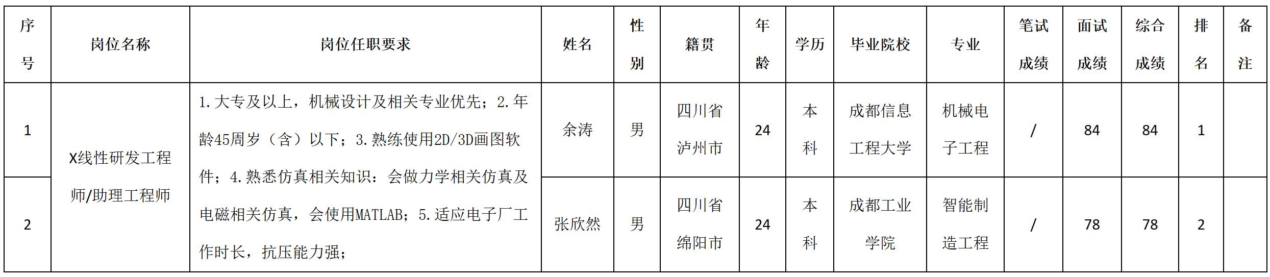 根據(jù)四川安和精密電子電器股份有限公司發(fā)布的招聘公告及招聘相關(guān)規(guī)定,經(jīng)筆試、面試等程序,現(xiàn)將筆試(面試)成績予以公示。