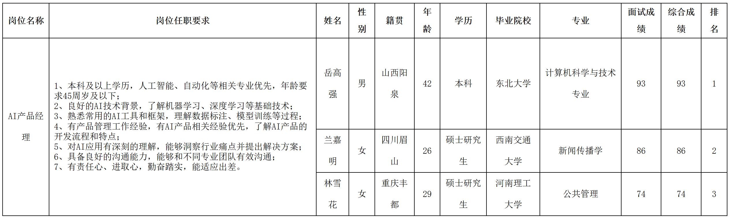 根據(jù)四川長虹虹微科技有限公司發(fā)布的招聘公告及招聘相關規(guī)定,經(jīng)面試等程序,現(xiàn)將面試成績予以公示。