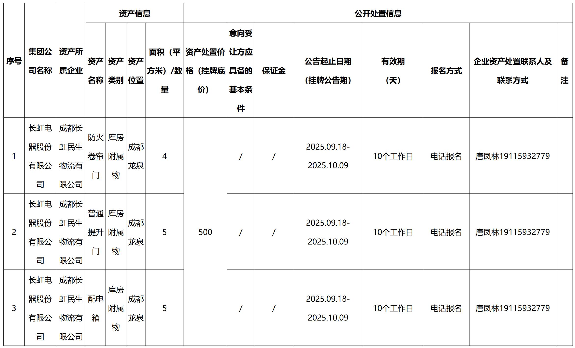 四川長虹民生物流股份有限公司企業(yè)資產(chǎn)處置公告