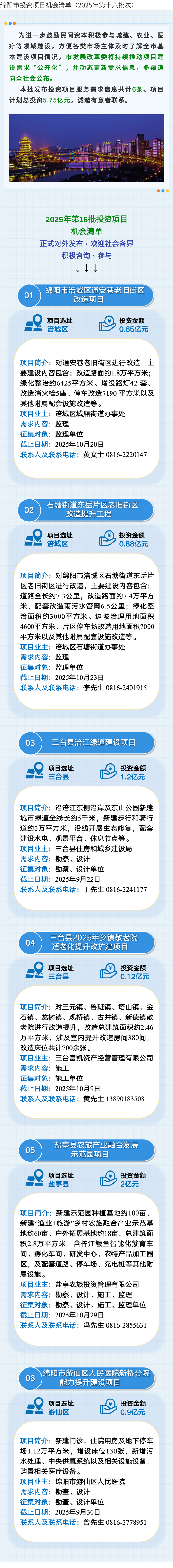 綿陽市投資項(xiàng)目機(jī)會(huì)清單(2025年第十六批次)