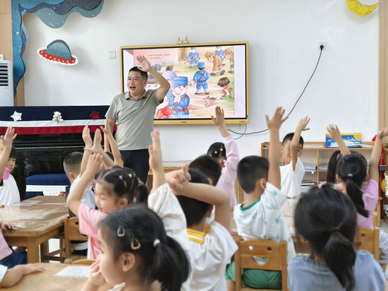 活動(dòng)中,黨支部書(shū)記龔蓉聲情并茂地講述《哪年的九一八》故事,帶領(lǐng)孩子們初步感知?dú)v史,通過(guò)展示老照片、模仿防空警報(bào)聲等趣味形式,讓孩子們輕輕觸摸那段歲月的印記;黨支部副書(shū)記王太平則為孩子帶來(lái)《雞毛信》的故事,用生動(dòng)語(yǔ)言展現(xiàn)海娃的機(jī)智勇敢,孩子們屏息凝神沉浸其中,悄然理解了“責(zé)任”與“勇敢”的含義;黨員干部何楠分享經(jīng)典紅色故事《王二小》,當(dāng)講到王二小為掩護(hù)鄉(xiāng)親英勇?tīng)奚鼤r(shí),孩子們眼中滿是崇敬與惋惜,教師適時(shí)引導(dǎo),讓孩子們懂得如今的幸福生活來(lái)之不易,要珍惜和平、感恩先烈。