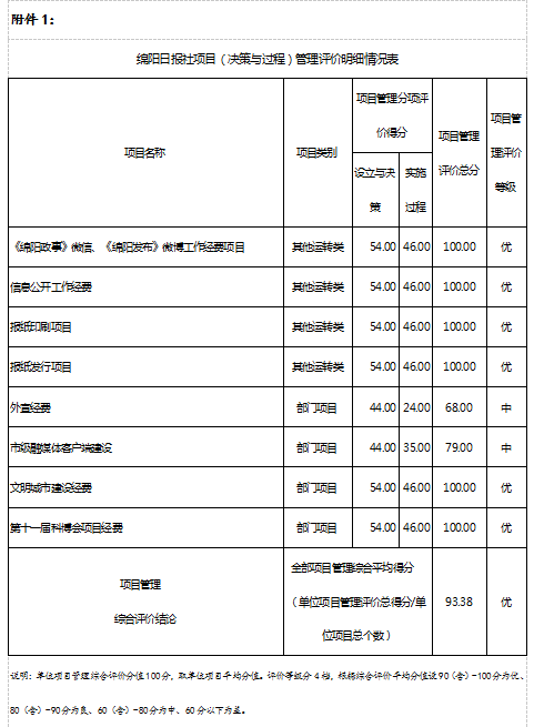 附件1:綿陽日報社項目(決策與過程)管理評價明細(xì)情況表