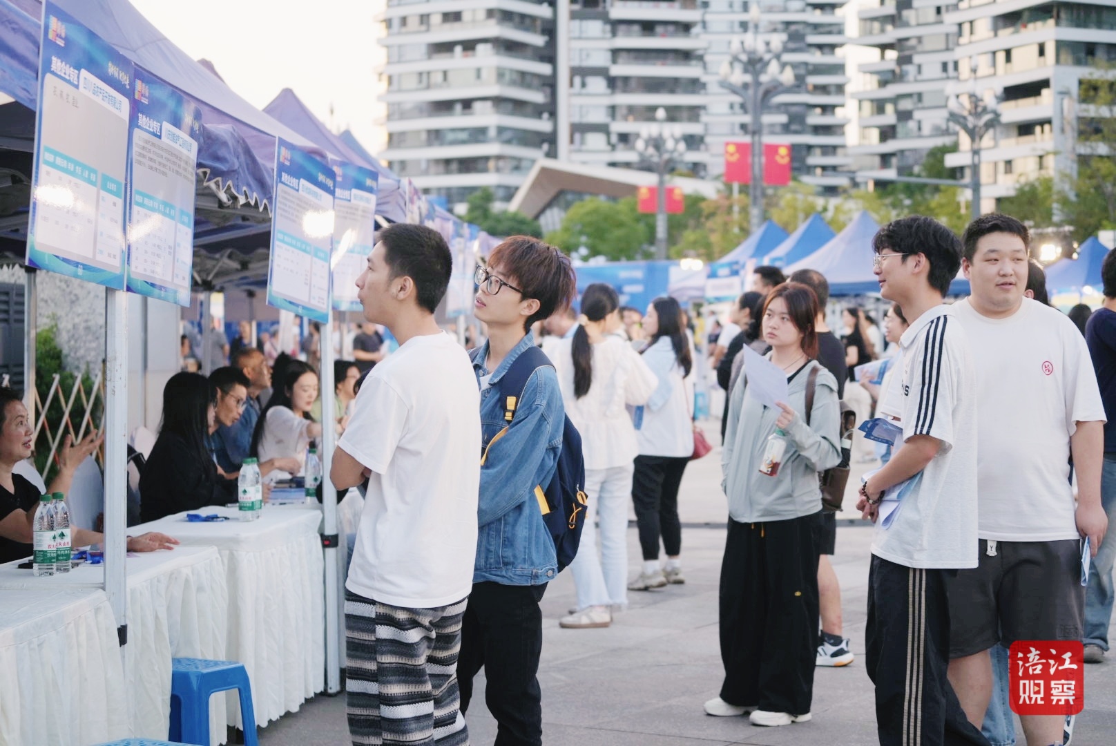 招聘會(huì)現(xiàn)場(chǎng)人頭攢動(dòng),求職者手持簡(jiǎn)歷在展位間穿梭咨詢,企業(yè)招聘專員熱情介紹崗位細(xì)節(jié),氣氛十分熱烈。