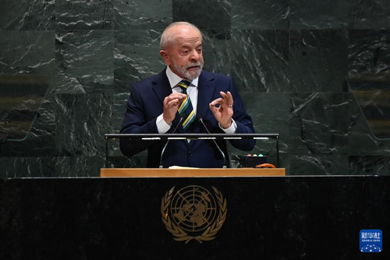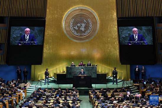 9月23日,在位于紐約的聯(lián)合國總部,巴西總統(tǒng)盧拉出席第80屆聯(lián)合國大會一般性辯論時發(fā)表講話,強調(diào)國際社會應(yīng)捍衛(wèi)多邊主義和民主制度、反對單邊制裁和干涉主權(quán)國家,并呼吁維護拉美地區(qū)和平。新華社記者李睿 攝