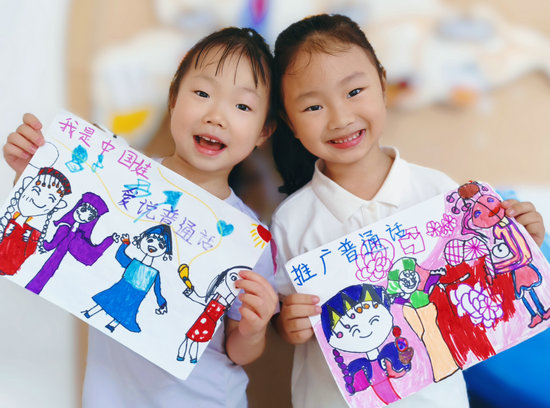 小班通過兒歌朗誦、趣味手指謠等方式,激發(fā)幼兒模仿和表達(dá)的興趣;中班開展了“我是故事大王”活動,鼓勵幼兒用普通話大膽講述故事、表演情景劇;大班則組織“小小推普員”主題繪畫、經(jīng)典詩詞誦讀、繞口令挑戰(zhàn)等,進(jìn)一步提升幼兒普通話表達(dá)的準(zhǔn)確性和流暢性。