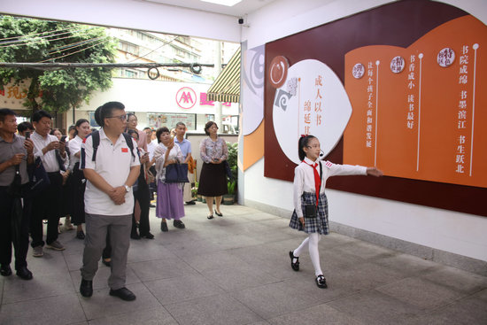 本次活動以“書香育人”為核心脈絡(luò),全面展現(xiàn)成綿路小學(xué)辦學(xué)特色、育人成果與社團(tuán)建設(shè)的豐碩實(shí)績。研修團(tuán)一行循著墨香浸潤的校園文脈,先后探訪書雅館、星夢苑、亦雋堂等浸潤人文氣息的校園空間。在紅領(lǐng)巾講解員引導(dǎo)下,校長們深入了解“一校三區(qū)”個(gè)性化發(fā)展藍(lán)圖——“書院成綿”傳承文脈、“書墨濱江”浸潤藝韻、“書生躍北”賡續(xù)紅色,深刻體會“成人以書,綿延其香”的辦學(xué)智慧與“為中華之崛起而讀書”的校訓(xùn)精髓。