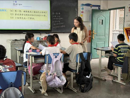 李老師五年級(jí)《小數(shù)的除法》教學(xué)則凸顯了對(duì)知識(shí)邏輯與學(xué)生差異的關(guān)注。教師以“整數(shù)除法算理”為鋪墊,通過“問題導(dǎo)入—對(duì)比探究—分步拆解”的清晰思路,精準(zhǔn)突破“商的小數(shù)點(diǎn)與被除數(shù)小數(shù)點(diǎn)對(duì)齊”這一核心難點(diǎn)。同時(shí),課堂設(shè)計(jì)了基礎(chǔ)計(jì)算、實(shí)際應(yīng)用題等分層練習(xí),兼顧不同學(xué)習(xí)水平學(xué)生;更通過小組討論引導(dǎo)學(xué)生自主總結(jié)算法,在掌握知識(shí)的同時(shí),有效培養(yǎng)了邏輯思維與合作能力。小組討論氣氛熱烈,小組代表匯報(bào)發(fā)言中,小組長聲音清晰、洪亮,展現(xiàn)出良好的學(xué)生們合作意識(shí)與問題解決能力。