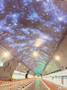 九綿高速白馬隧道里的全息投影。 曹菲攝