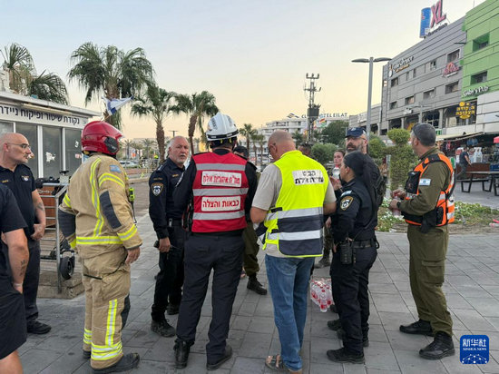 9月24日,在以色列南部紅海海濱城市埃拉特,以軍士兵和急救人員在無人機襲擊現(xiàn)場開展工作。新華社發(fā)(以色列國防軍供圖)