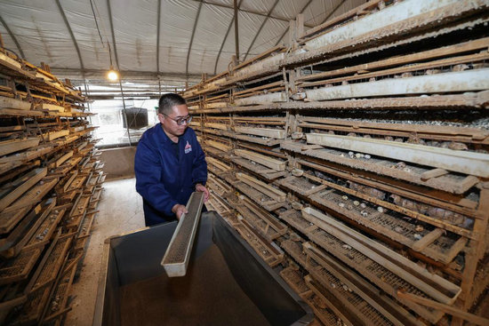 9月23日,在金華市金東區(qū)的金華黃氏鵪鶉專業(yè)合作社養(yǎng)殖場(chǎng)內(nèi),工作人員在給鵪鶉喂食。