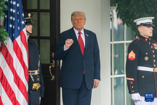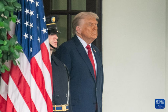9月25日,在美國(guó)首都華盛頓白宮,美國(guó)總統(tǒng)特朗普迎候土耳其總統(tǒng)埃爾多安(未在畫面中)。新華社記者 胡友松 攝