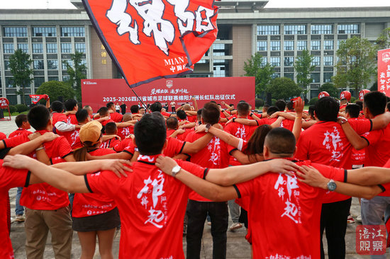 9月26日上午,2025-2026四川省城市足球聯賽綿陽九洲長虹隊出征儀式在園藝山舉行。