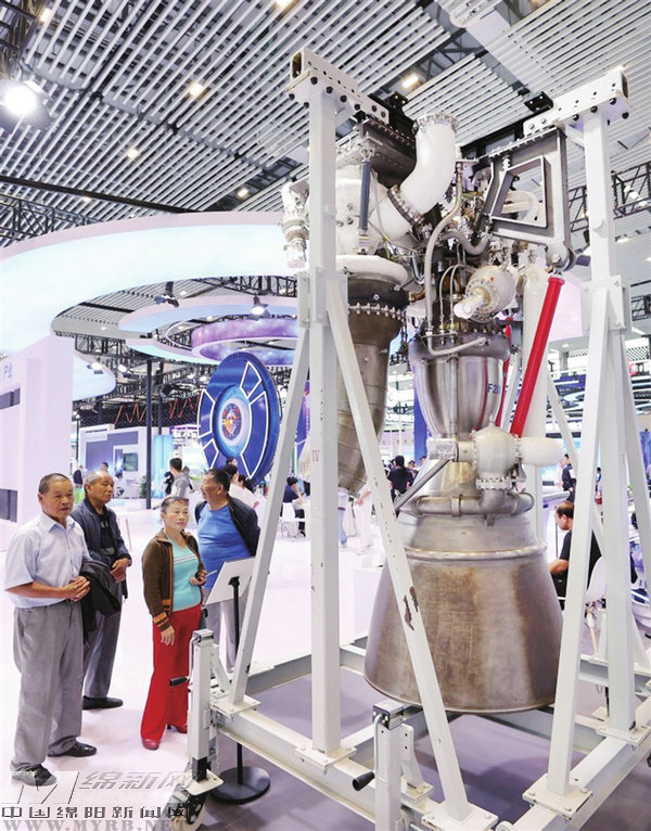 9月28日,在第十三屆中國(綿陽)科博會上展出的液氧甲烷火箭發(fā)動機。