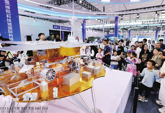 9月28日,在第十三屆中國(綿陽)科博會上,“天問一號”火星探測器模型備受關注。