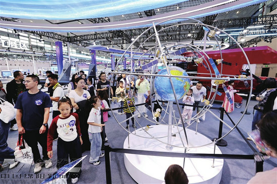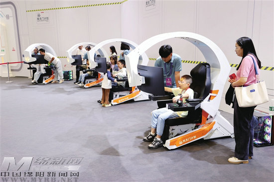 9月28日,在第十三屆中國(綿陽)科博會“南天門計劃”主題展區(qū),觀眾沉浸式體驗科幻裝備的魅力。