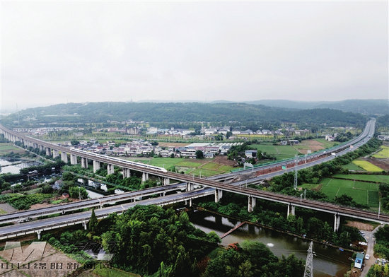 在九綿高速青蓮互通附近,九綿高速與西成高鐵交匯。 新華社記者 江宏景 攝