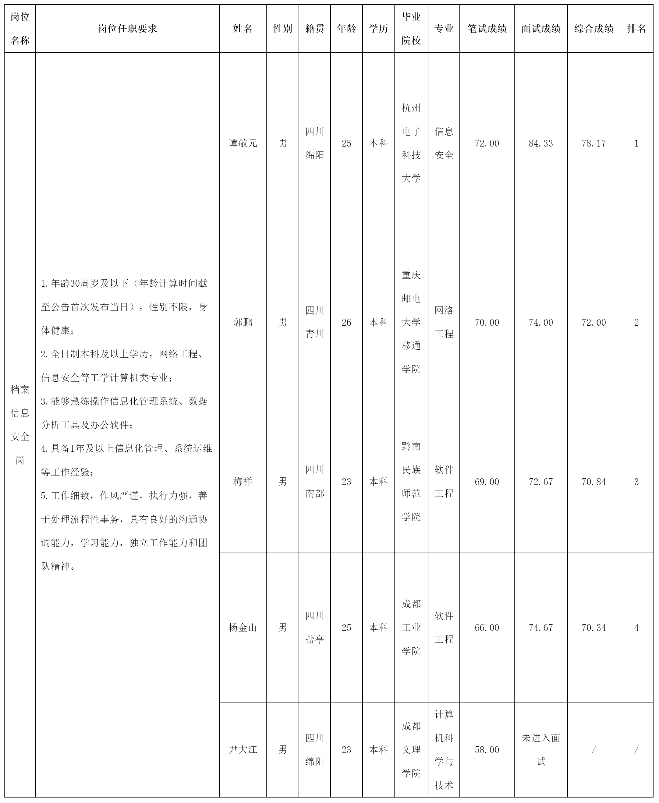 根據(jù)綿陽市綿投商業(yè)運營管理有限責任公司發(fā)布的招聘公告及招聘相關規(guī)定,經(jīng)筆試、面試等程序,現(xiàn)將筆試(面試)成績予以公示。