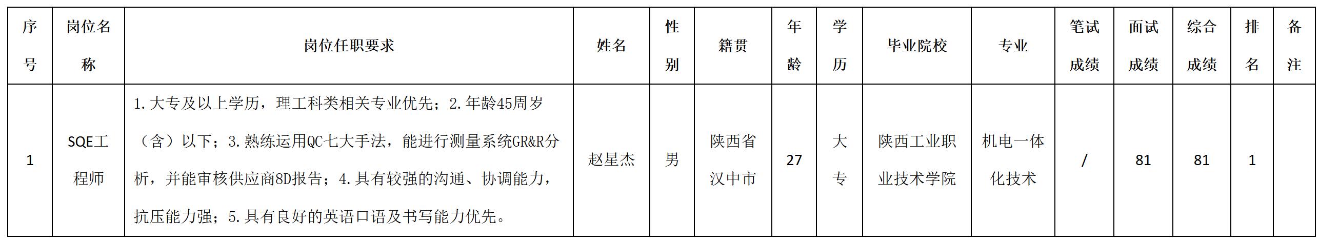 根據(jù)四川安和精密電子電器股份有限公司發(fā)布的招聘公告及招聘相關規(guī)定,經(jīng)筆試、面試等程序,現(xiàn)將筆試(面試)成績予以公示。