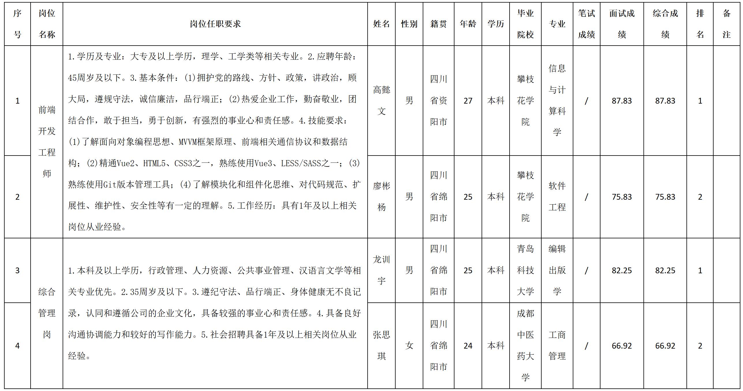 根據(jù)四川九強通信科技有限公司發(fā)布的招聘公告及招聘相關規(guī)定,現(xiàn)將測試成績予以公示。