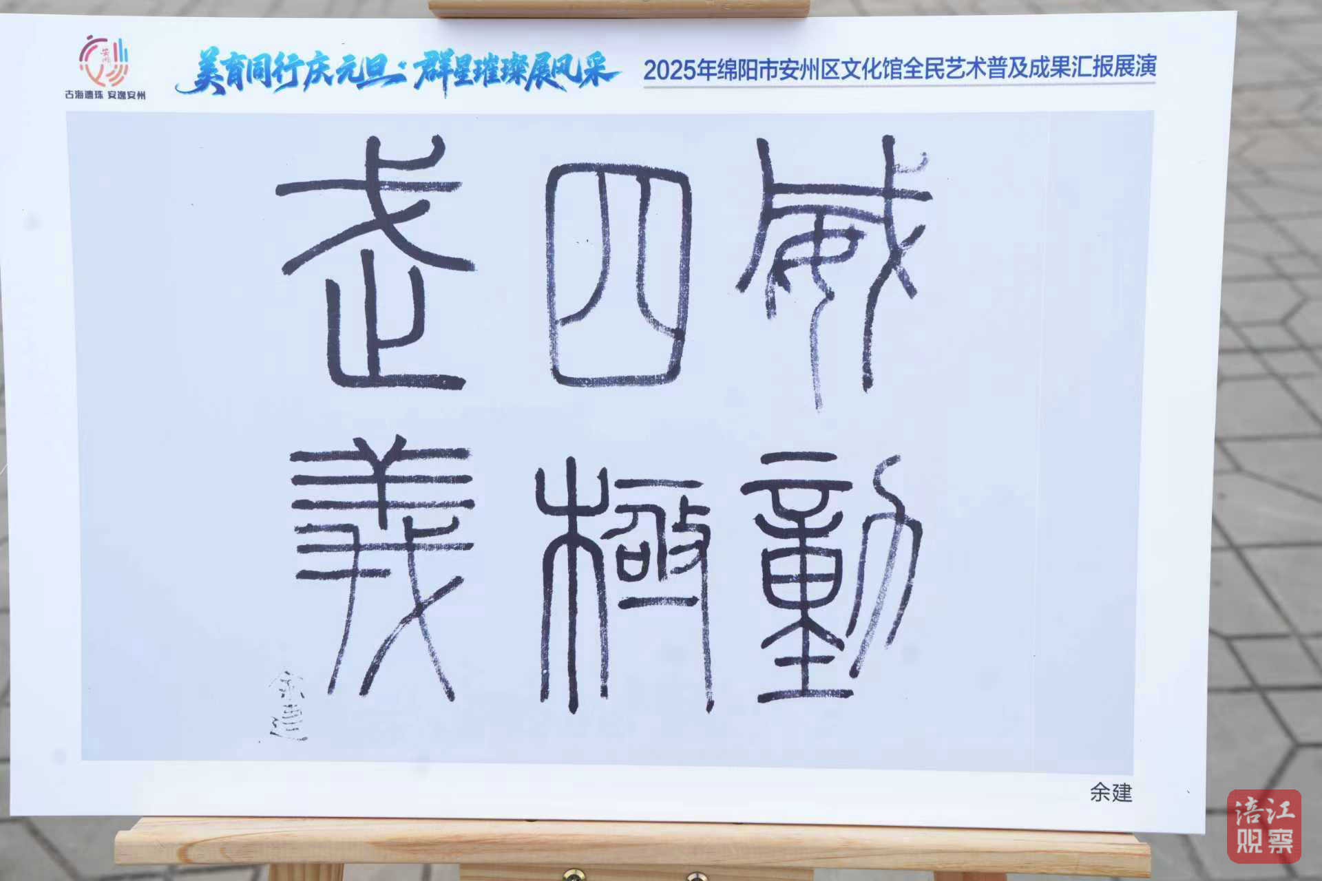 在安州區(qū)文化廣場,“美育同行慶元旦·群星璀璨展風(fēng)采”全民藝術(shù)普及成果匯報(bào)展演舉行。這場集藝術(shù)展演、非遺展示與書畫展覽于一體的文化盛宴,以多元藝術(shù)形式集中呈現(xiàn)全區(qū)全民美育工作成效,為市民帶來一場兼具觀賞性與文化性的視聽享受。
