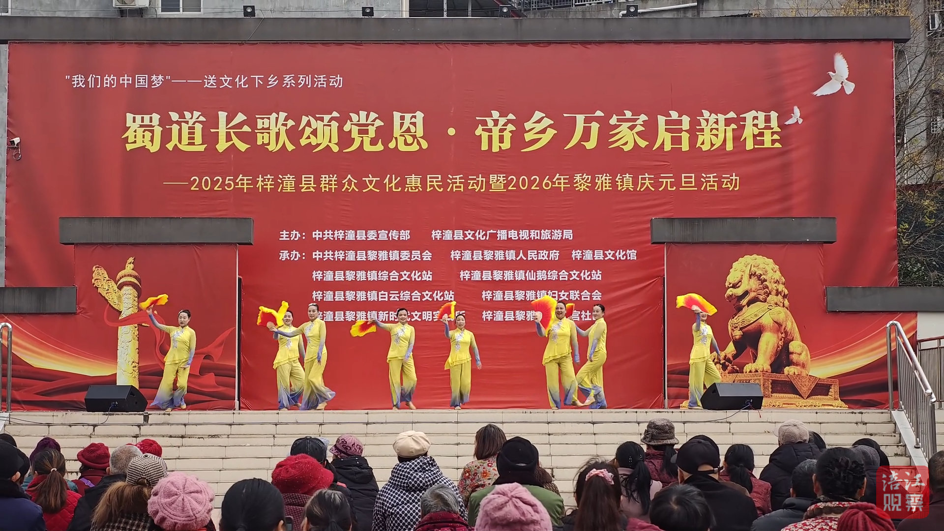 在梓潼縣,“蜀道長歌頌黨恩·帝鄉(xiāng)萬家啟新程”送文化下鄉(xiāng)活動(dòng)在黎雅鎮(zhèn)文化廣場精彩開啟,讓百姓在家門口共享節(jié)日喜悅。