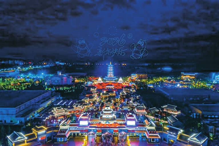 方特園區(qū)無人機(jī)表演。 記者 李春梅 攝