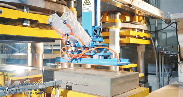 北川首條淤泥制無機(jī)生態(tài)石生產(chǎn)線。 記者 唐云峰 攝
