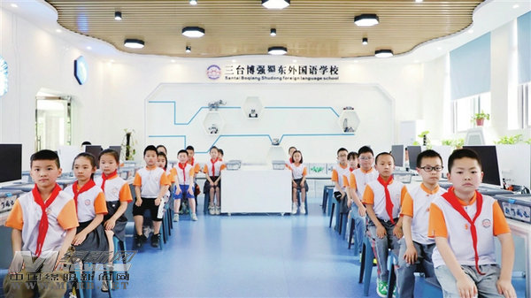 三臺博強蜀東外國語學(xué)校的學(xué)生在課堂上?! ∮浾?李錦輝 攝