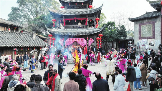 除了篝火聯歡,游客們還觀看了羌族歌舞、民國風情主題實景劇等表演。