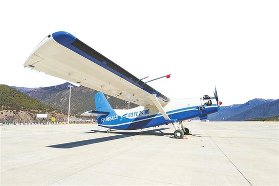 執(zhí)行川藏高原跨區(qū)域無人機物流航線首飛的FP-985“金牛座”大型固定翼無人機。新華社發(fā)