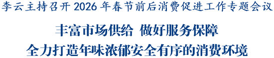 綿陽新聞網(wǎng)訊 1月14日,市委副書記、市長李云主持召開專題會議,研究部署2026年春節(jié)前后消費(fèi)促進(jìn)工作,強(qiáng)調(diào)要深入學(xué)習(xí)貫徹習(xí)近平總書記關(guān)于促進(jìn)消費(fèi)的重要論述,認(rèn)真落實(shí)中央、省委、市委經(jīng)濟(jì)工作會議部署要求,進(jìn)一步豐富市場供給,扎實(shí)做好服務(wù)保障,全力打造年味濃郁、安全有序的消費(fèi)環(huán)境,更好發(fā)揮消費(fèi)對經(jīng)濟(jì)發(fā)展的基礎(chǔ)性作用。