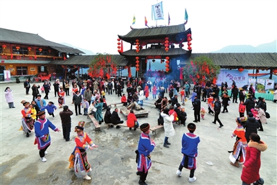 “花果山莊”院子里,多肉植物蓬勃生長(zhǎng),餐廳墻壁上,色彩鮮艷、圖案古樸的羌繡作品展現(xiàn)獨(dú)特的羌文化魅力。農(nóng)文旅交流中心內(nèi),不僅年貨擺得滿滿當(dāng)當(dāng),羌繡荷包、水磨漆擺件等文創(chuàng)產(chǎn)品琳瑯滿目;為了迎接來(lái)村里過(guò)年的客人,整個(gè)村寨正在緊鑼密鼓籌備著一系列豐富的新春民俗活動(dòng)……