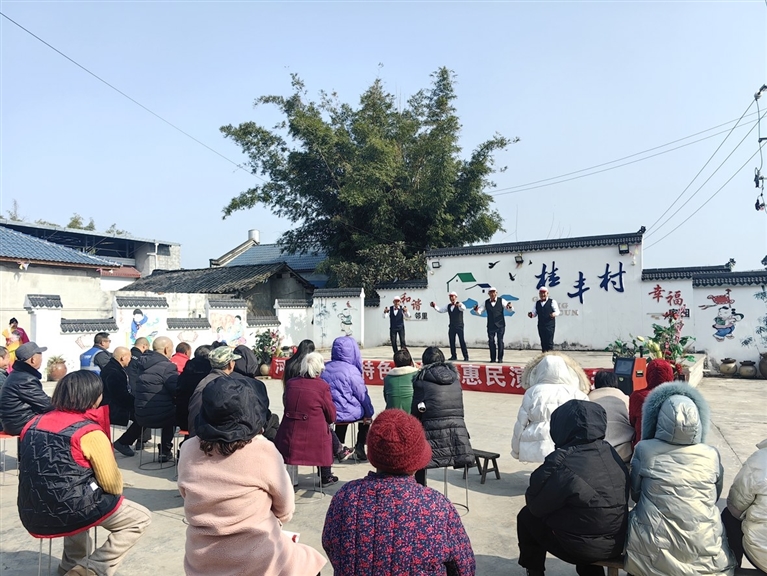 村民觀看河清鎮(zhèn)平安特色文化站惠民演出。 記者 唐云峰 攝