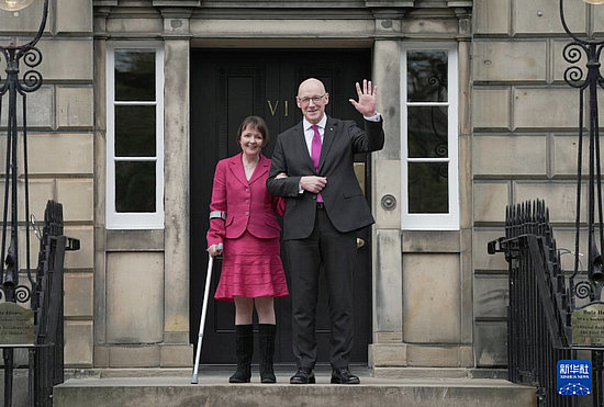 5月7日,在英國蘇格蘭愛丁堡,約翰·斯溫尼偕夫人抵達官邸。 英國蘇格蘭地方議會7日經(jīng)投票確認,蘇格蘭民族黨黨首約翰·斯溫尼出任蘇格蘭地方政府首席大臣。[