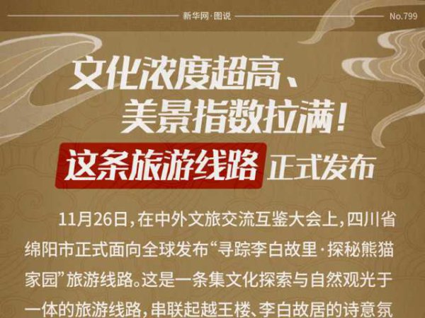 11月26日,新華網(wǎng)客戶端發(fā)布圖文《文化濃度超高、美景指數(shù)拉滿!這條旅游線路正式發(fā)布》,聚焦綿陽市面向全球發(fā)布的“尋蹤李白故里 探秘熊貓家園”旅游線路。[