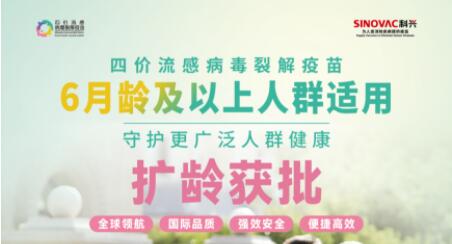 9月30日,北京科興生物制品有限公司生產(chǎn)的四價流感病毒裂解疫苗擴齡申請獲得國家藥品監(jiān)督管理局(NMPA)批準,適用人群年齡在“3歲及以上人群”基礎(chǔ)上增加“6-35月齡人群”??婆d四價流感疫苗此次獲批擴齡后適用范圍已覆蓋6月齡及以上全年齡段,為預(yù)防流感提供了統(tǒng)一劑型的高品..[