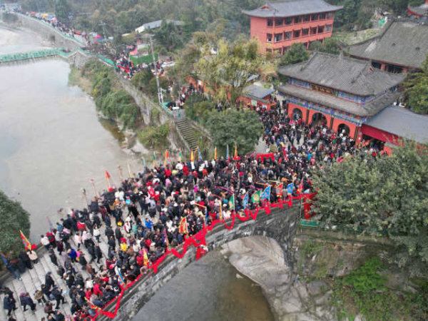 春回大地,萬物復(fù)蘇。3月19日,農(nóng)歷二月二十,一年一度的“中國春社·雎水踩橋”祭橋儀式在四川省綿陽市安州區(qū)雎水鎮(zhèn)太平橋舉行。這座擁有兩百多年歷史的古橋,再次見證了人潮涌動(dòng)、祈福納祥的盛況,非遺文化在春日里綻放出絢麗光彩。[