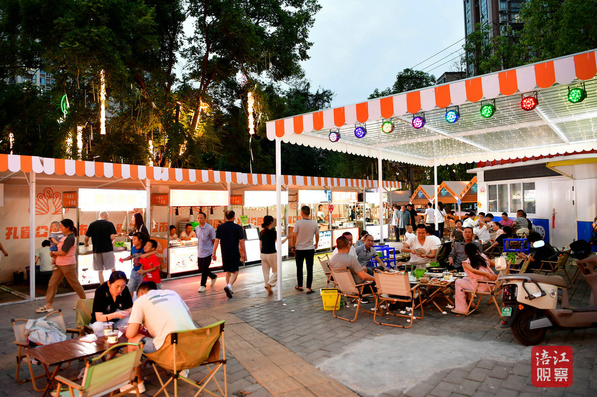 夜幕降臨,華燈初上,位于綿陽市游仙經(jīng)濟試驗區(qū)的孔雀公園夜市熱鬧起來。60多個攤位依次排開,熱氣騰騰的美食散發(fā)著誘人香氣,吸引了不少市民,大家在此盡享美食,樂享美好生活,一場場充滿活力的夜間消費盛宴上演。 [