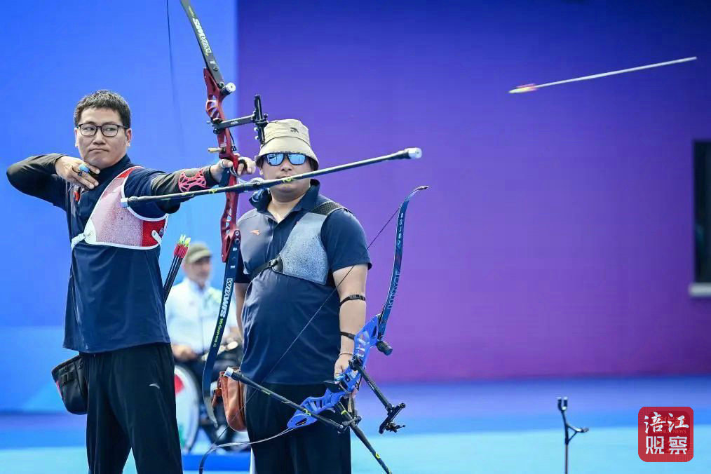 10月25日,在杭州第4屆亞殘運(yùn)會(huì)射箭項(xiàng)目男子反曲弓雙人團(tuán)體公開級(jí)金牌賽中,中國組合甘俊/趙理學(xué)獲得亞軍。[