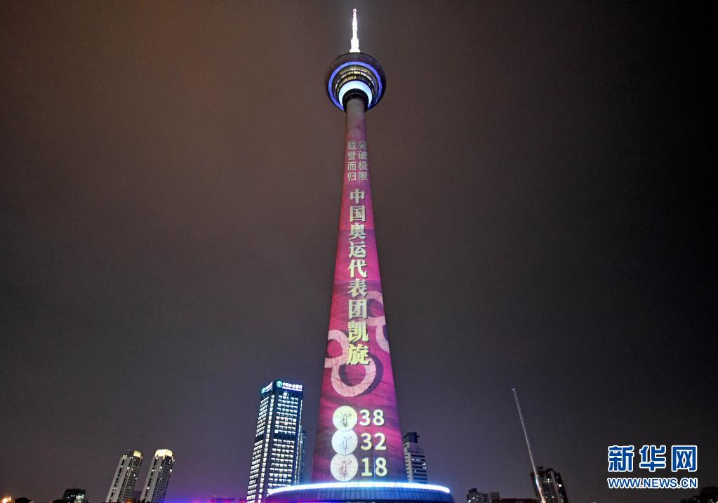 當(dāng)晚,天津市地標(biāo)建筑天塔被點(diǎn)亮,致敬剛剛結(jié)束東京奧運(yùn)會(huì)之旅的中國(guó)體育代表團(tuán)。[