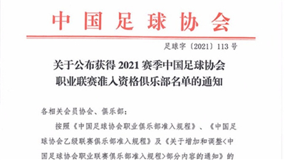 2021賽季中國足球三級(jí)職業(yè)聯(lián)賽賽制確定
