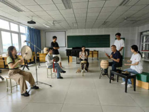 “現(xiàn)在我們開始新學(xué)期的第一課,同學(xué)們先來復(fù)習(xí)下上學(xué)期學(xué)習(xí)的內(nèi)容?!睅滋烨暗囊粋€(gè)下午,在綿陽師范學(xué)院音樂與表演藝術(shù)學(xué)院音樂樓五樓一間教室里,綿陽市非遺中心鼓師趙強(qiáng)以傳統(tǒng)音樂傳承班教師的身份,開始了新學(xué)期的第一次授課。 [