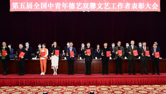 3月28日,第五屆全國中青年德藝雙馨文藝工作者表彰大會在京召開。中共中央宣傳部、人力資源社會保障部、中國文聯(lián)決定,授予44名同志“全國中青年德藝雙馨文藝工作者”稱號,觀眾熟悉的演員吳京、黃渤、張毅(張譯),導(dǎo)演劉江、劉家成、國家話劇院院長田沁鑫等在列。[